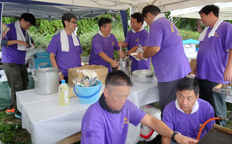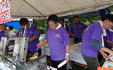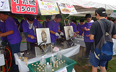 途切れないお客様の行列に対応するため、一生懸命イカ焼つくりにメンバー一同一丸となっての活動でした。