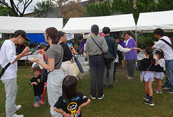 クラブテントからは、メンバーの「今日一番の仕上がり!」と焼きあがるたびに、イカ焼に威勢のいい声がかかります。行列のお客様も笑顔です。