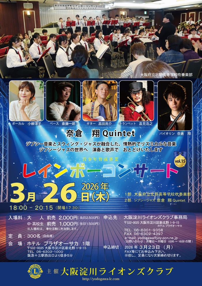 開催日:2026年3月26日(木) 開演 18:00 - 20:15 会場:ホテルプラザオーサカ |