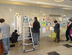 | パーテーションを組み立て、ポスター張りをし、作品展の準備完了 | ||